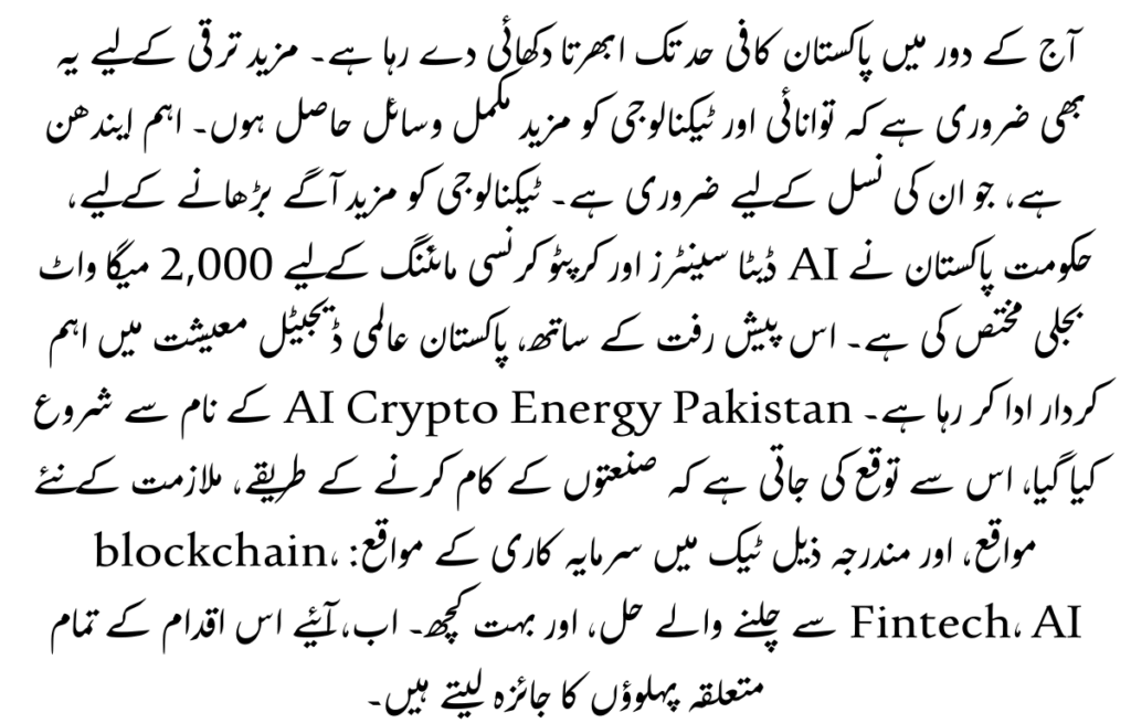 Today, almost every digital industry utilizes energy to power applications such as AI models, blockchain systems, or cryptocurrency mining farms. All these systems rely upon energy. Take the example of AI training, which requires a large amount of computational power. While other industries, such as mining Bitcoin or other cryptocurrencies, use energy-intensive mining mechanisms. Considering all these reasons, Pakistan has allocated 2,000 MW of electricity for these digital industries. This demonstrates that not only is Pakistan recognizing the need for energy, but it is also investing in the right places to meet that need.