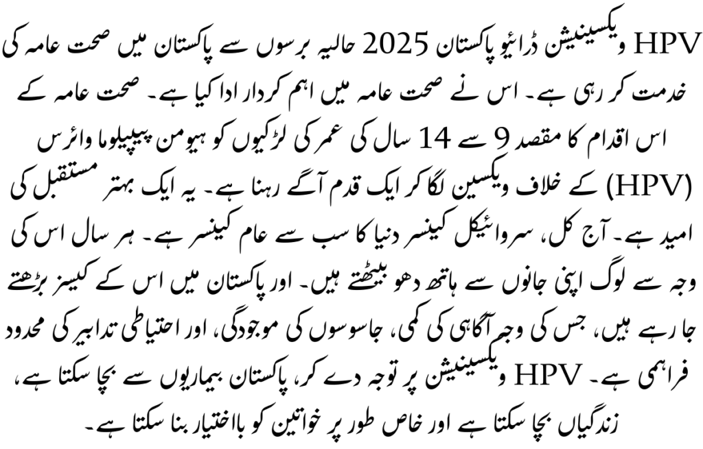 Why is the HPV Vaccination Drive Pakistan 2025 important?