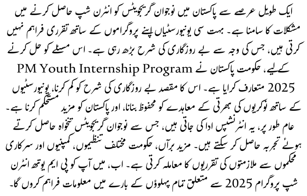 For a long time, young graduates in Pakistan have been facing difficulties in getting internships. Many universities do not provide placements with their programs, which is why the unemployment rate is increasing. To address this issue, the Government of Pakistan has introduced the PM Youth Internship Program 2025. The aim is to reduce the unemployment rate, secure a job recruitment deal with universities, and further stabilize Pakistan. Typically, these internships are paid, allowing young graduates to gain experience while earning a salary. Moreover, the government deals with job placements from various organizations, companies, and government departments. Now, I will provide you with all the aspects related to the PMYIP