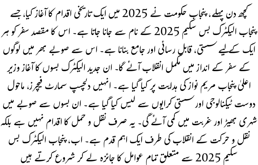 π Long-Term Impact: The government’s vision is to improve transport further and revolutionize Punjab with a next-generation transport ecosystem, with the Punjab Electric Bus Scheme 2025 as its foundation. The government plans to integrate electric buses, metro systems, and green infrastructure to generate more revenue and more mobility. It will transform Punjab into a cleaner, smarter, and more connected province.